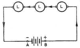 Circuito donde solo existe un camino para la corriente, desde la fuente suministradora de energía a través de todos los elementos del circuito, hasta regresar nuevamente a la fuente. Esto indica que la misma corriente fluye a través de todos los elementos del circuito, o que en cualquier punto del circuito la corriente es igual.