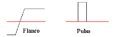 Como los flancos y los pulsos, que solo se presentan una sola vez, se denominan señales transitorias. Un flanco ó escalón indica un cambio repentino en el voltaje, por ejemplo cuando se conecta un interruptor de alimentación. El pulso indicaria, en este mismo ejemplo, que se ha conectado el interruptor y en un determinado tiempo se ha desconectado. Generalmente el pulso representa un bit de información atravesando un circuito de un ordenador digital ó también un pequeño defecto en un circuito (FUENTE : cartagena99 )